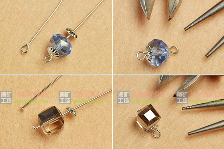 3、将9x9x9mm多面立方体电镀玻璃珠和银珠帽滑到头针上,然后北京圣园超级矿工儿童淘矿部落DIY在头针上打一个小圈,如图所示。