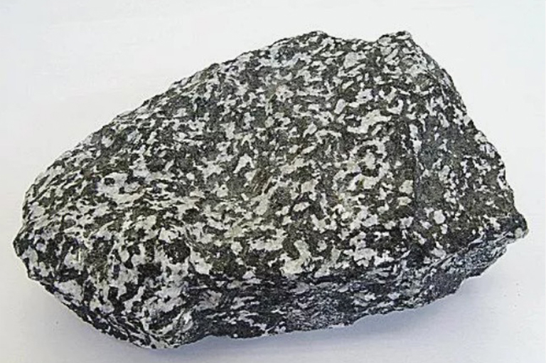 闪长岩是一种深成岩即在组合物花岗岩和辉长岩之间。它主要由白色斜长石和黑色角闪石组成。与花岗岩不同,闪长岩没有或只有很少的石英或碱金属长石。与辉长岩不同,闪长岩中含有钠盐而不是钙盐。通常,苏打斜长石是明亮的白色变种钠长石,赋予闪长岩高浮雕的外观。如果从火山喷发的闪长岩(也就是挤压岩),它就会冷却成安山岩熔岩。